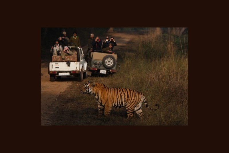 After lunch, the afternoon safari is a continuation of the saga. The predators and prey engage in a dance of survival, a spectacle that unfolds before your awestruck eyes. Your camera's shutter captures moments frozen in time – the stealthy pounce of a jungle cat, the contemplative gaze of a grazing gaur.
